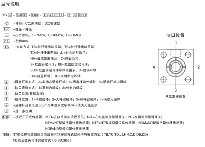 1.帶接近開(kāi)關(guān)的液壓缸:即在標(biāo)準(zhǔn)YGC/YGD系列液壓缸前后蓋內(nèi)安裝上電感式接近開(kāi)關(guān)能在液壓缸完全外伸或內(nèi)縮時(shí)提供指示,該裝置工作溫度-35~+80℃,使用壓力密封,作用在傳感面上的動(dòng)態(tài)壓力可達(dá)30MPa,通過(guò)把接近開(kāi)關(guān)裝進(jìn)缸頭或缸蓋,可消除與外部行程開(kāi)關(guān)連帶密封于缸體內(nèi),所以不容易損壞。我公司提供的電感式接近開(kāi)關(guān)全部有德國(guó)工廠制造,通過(guò)UL及CE認(rèn)證工作,并設(shè)計(jì)成能在強(qiáng)磁場(chǎng)(例:焊接設(shè)備和大電流電動(dòng)機(jī)附近)及強(qiáng)振動(dòng)(高達(dá)30g、200Hz的振動(dòng))環(huán)境下安全工作,因而被汽車工業(yè)及重載工業(yè)廣泛采用。另外,接近開(kāi)關(guān)還可以與編程控制器直接兼容。